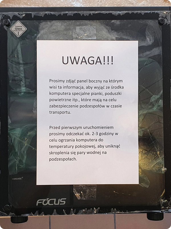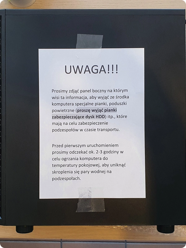 Wspomniana już druga informacja o tym, co należy zrobić po otrzymaniu paczki ze stacją roboczą.